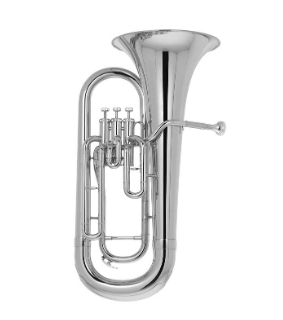 3 stainless steel pistons, brass with silver plated finish, .571 bore, 11" upright bell, 6 1/2 AL mouthpiece, molded plastic case (10-year warranty) NA370S